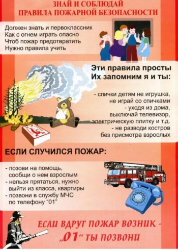 1. Общие правила поведения при пожаре в доме, квартире В вашем доме, квартире или на даче начался пожар? Что делать и чего нельзя делать? - Звоните в пожарную охрану по номеру 101 и сообщите о происшествии. По возможности, оповестите взрослых. - Постарайтесь затушить огонь своими силами. Но помните, если с огнем не удалось справиться в течение нескольких минут, то дальнейшие попытки бесполезны и смертельно опасны.